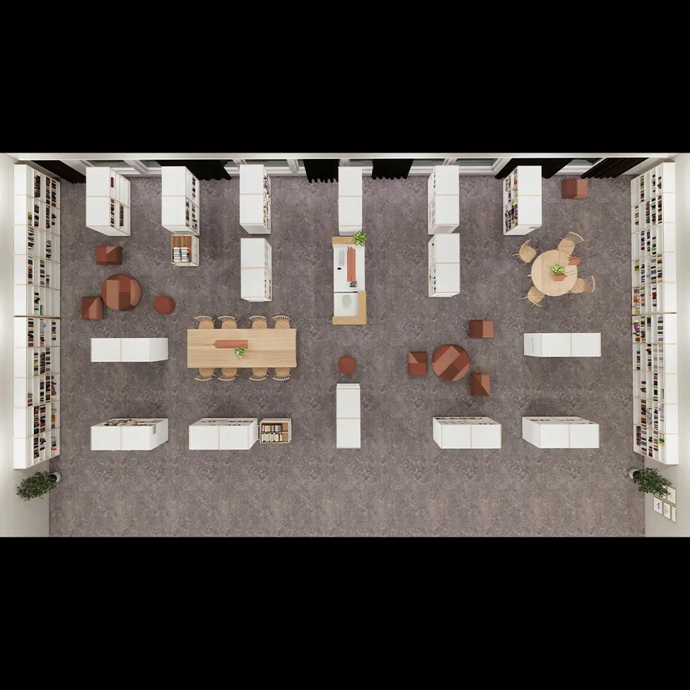 Anpassat för en rumstorlek på ca 120 m². 238 hyllmeter.
